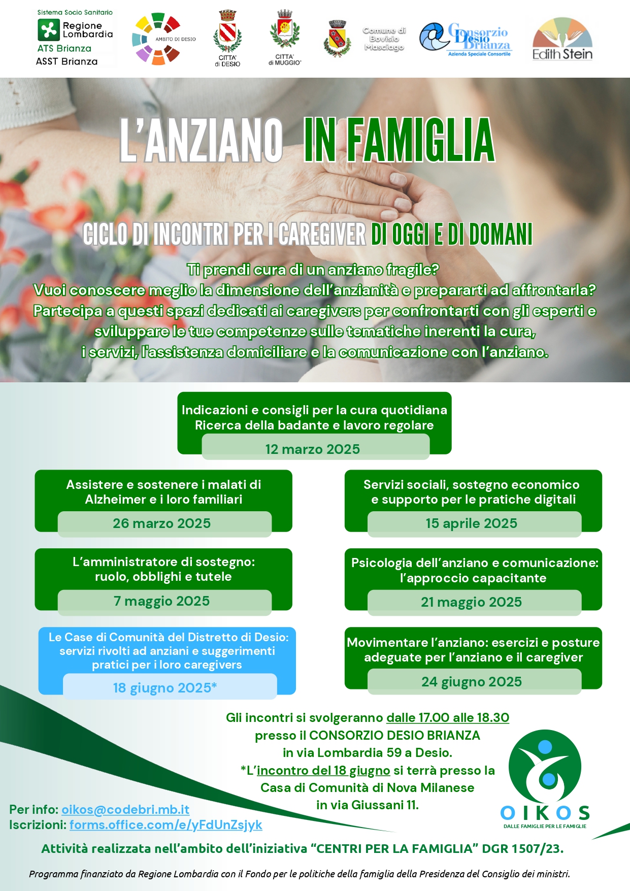- 18 giugno 2025 Le Case di Comunità del Distretto di Desio: servizi rivolti ad anziani e suggerimenti pratici per i loro caregivers.