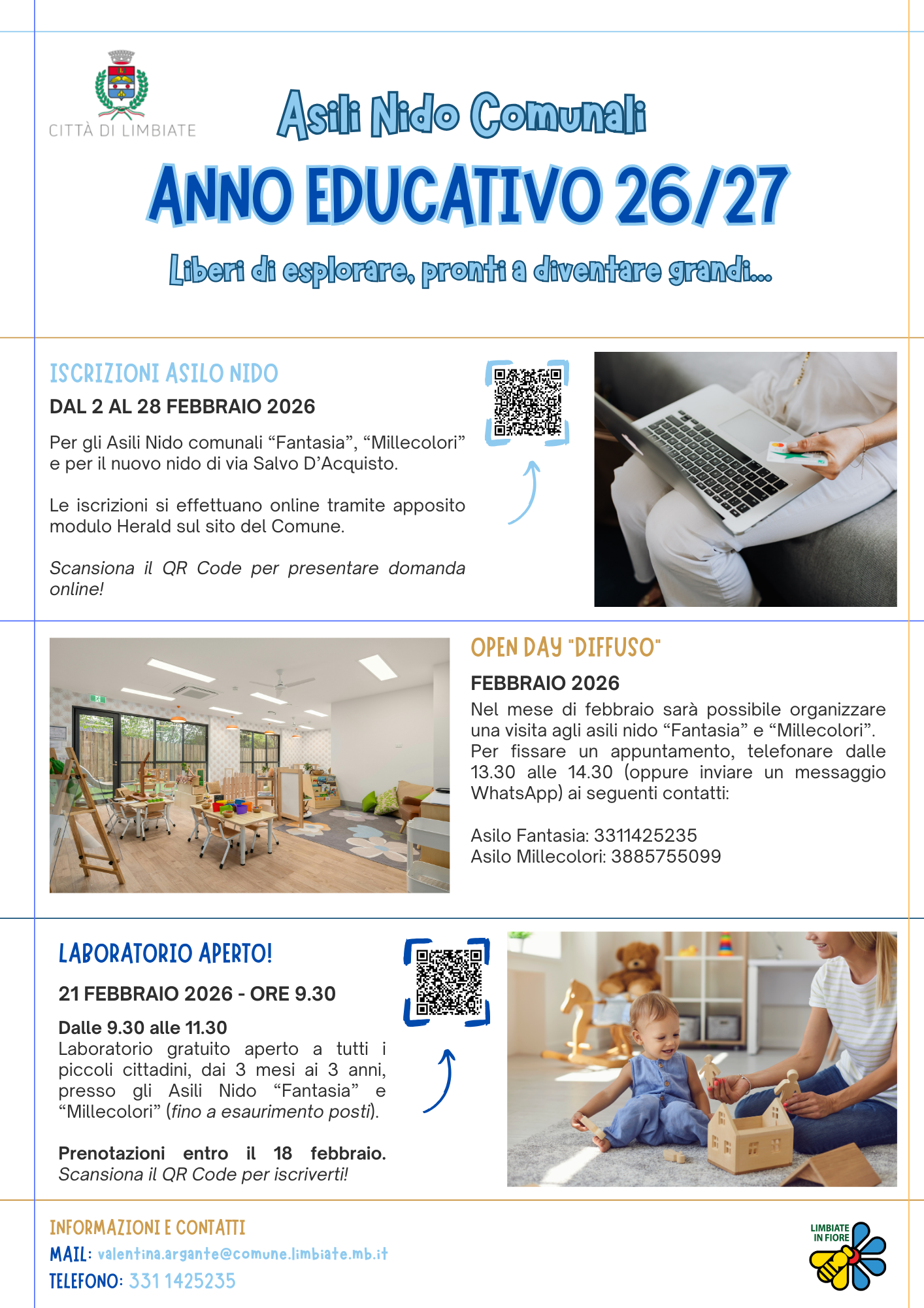 Per tutto il mese di febbraio, i genitori potranno visitare le strutture “Fantasia” e “Millecolori” previo appuntamento.