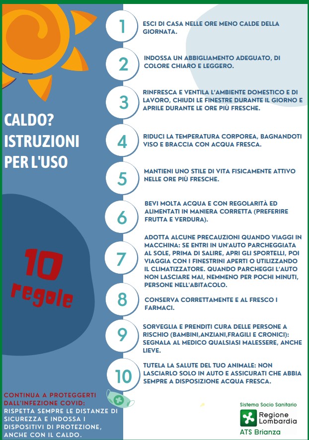 Come ogni anno ATS-Brianza ha messo a disposizione dei cittadini informazioni utili a gestire e prevenire gli effetti conseguenti a ondate climatiche caratterizzate da elevate temperature ambientali.