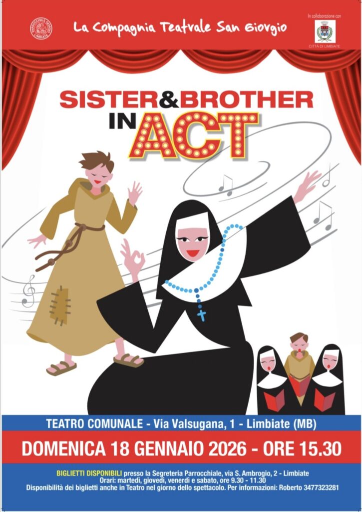 La Compagnia Teatrale San Giorgio, con la collaborazione dell’Amministrazione Comunale di Limbiate, è lieta di annunciare un pomeriggio all’insegna del divertimento e della musica: domenica 18 gennaio 2026, il sipario del Teatro Comunale si alzerà su “Sister & Brother in ACT”, la nuova produzione della Compagnia Teatrale San Giorgio.