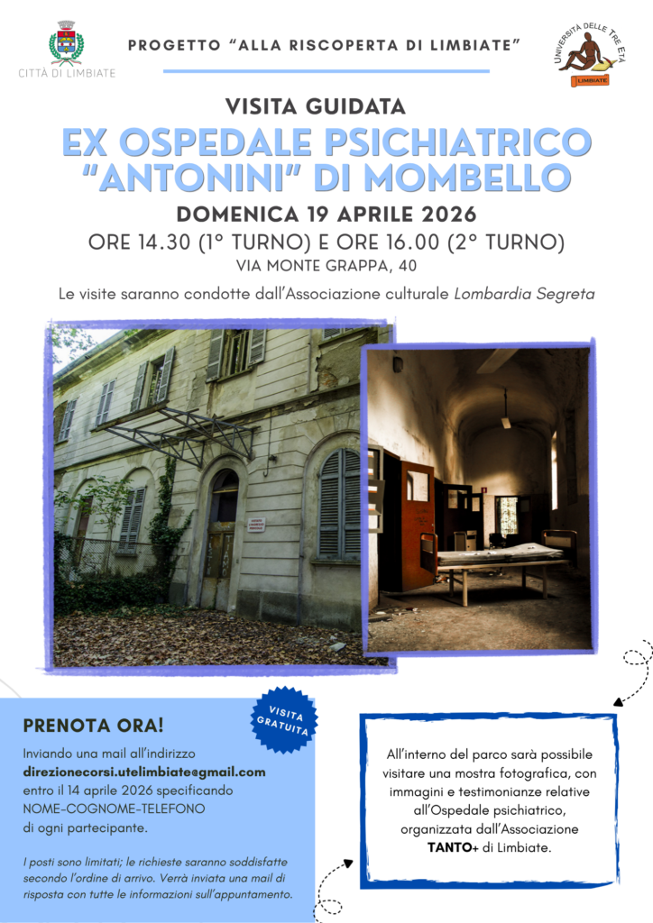Nell’ambito del progetto “Alla Riscoperta di Limbiate”, organizzato dalla collaborazione tra Comune di Limbiate e Università delle Tre Età di Limbiate, vi offriamo l’opportunità di varcare quei cancelli in modo sicuro e guidato.